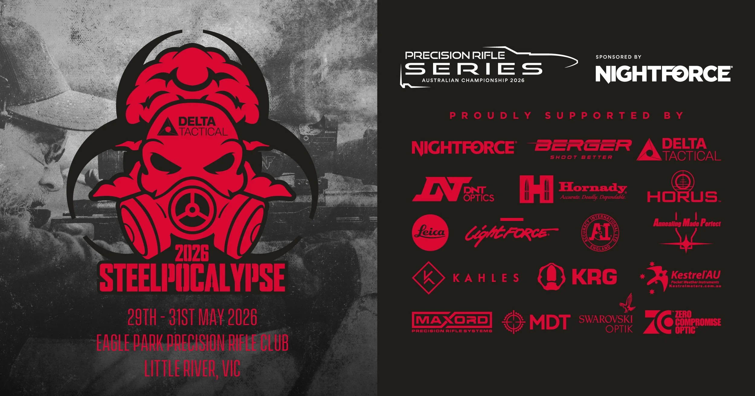 No introduction needed—Wet, Wild & Windy says it all! The Delta Tactical Steelpocalypse is back for 2026, bringing the ultimate test of skill and endurance to the PRS calendar. As the fifth series match of the 2026 Nightforce PRS season, this event is hosted by SSAA Eagle Park Precision Rifle Club. Get ready to battle the elements and prove your marksmanship!